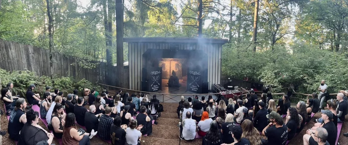 Wyrd War is Portland-based duo Dennis Dread and Meadow. They have been active champions of the strange and horrifically beautiful in art, film, and music in the Rose City for well over a decade. In 2023 they flew Mortiis out to perform Født til ü Herske in its entirety for the first time ever at two sold out shows: Night one at Enchanted Forest, the second at Star Theater. The shows were professionally recorded, mixed, and have now been released as a limited edition double gatefold LP in a run of 500.