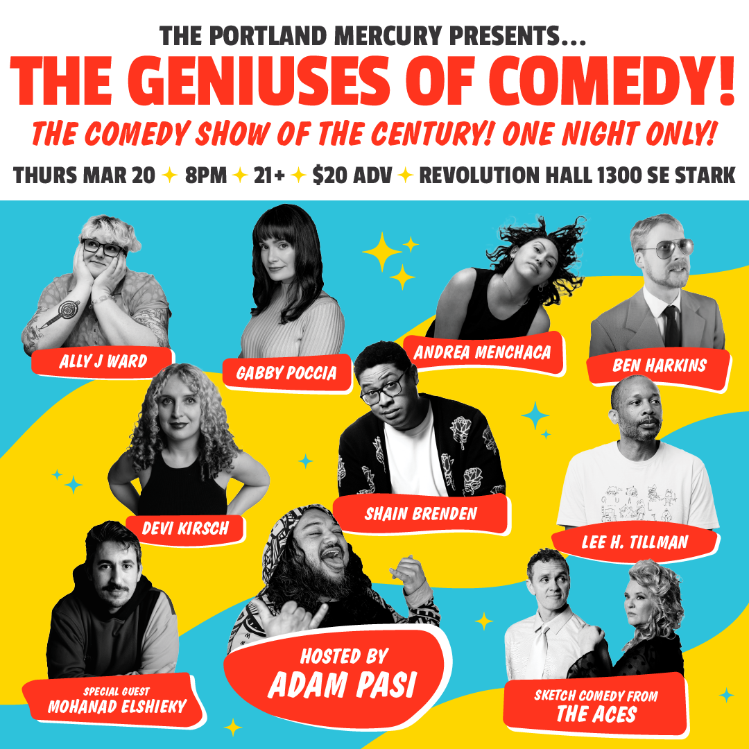 You like laughing your guts out, right? Then you won't want to miss the Portland Mercury’s Undisputable Geniuses of Comedy 2025, featuring Portland’s funniest people (and hilarious up-and-comers) all on one stage. And it's all going down at Revolution Hall this Thursday, March 20!Â
