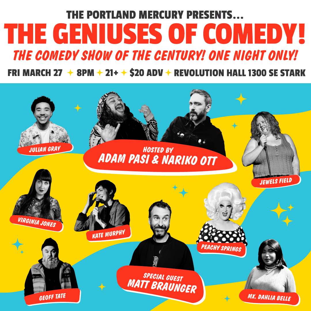 You like laughing your guts out, right? Then you won't want to miss the Portland Mercury’s Undisputable Geniuses of Comedy 2026, featuring Portland’s funniest people (and hilarious up-and-comers) all on one stage.