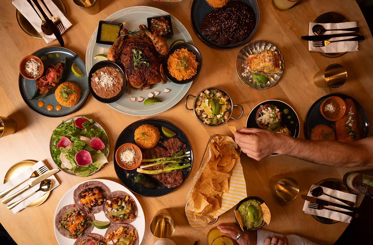 Madrina is a sort of fusion of De Leonâs other two restaurants. Its daytime fare features some of the same guisados youâll find at Salsas Locas, including birria and chicken tinga, plus nopales for a plant-based option. Its little market area, which sells Mexican tamarind chile candy and Oaxacan handicrafts, is reminiscent of her parentsâ tienda. At night, the chile relleno dipped in fluffy egg batterâa staple at Tienda y Tortilleria De Leon which was carried over to Salsas Locasâmakes an appearance. Tacos come filled with the likes of al pastor or cochinita pibil, while large plates include chicken mole and carne asada. The shareable half pollo rostizado, optionally served with rice, beans, and handmade blue corn tortillas, is an homage to the barbecued chicken her father made for her family growing upâsimple, humble, and delicious.Â