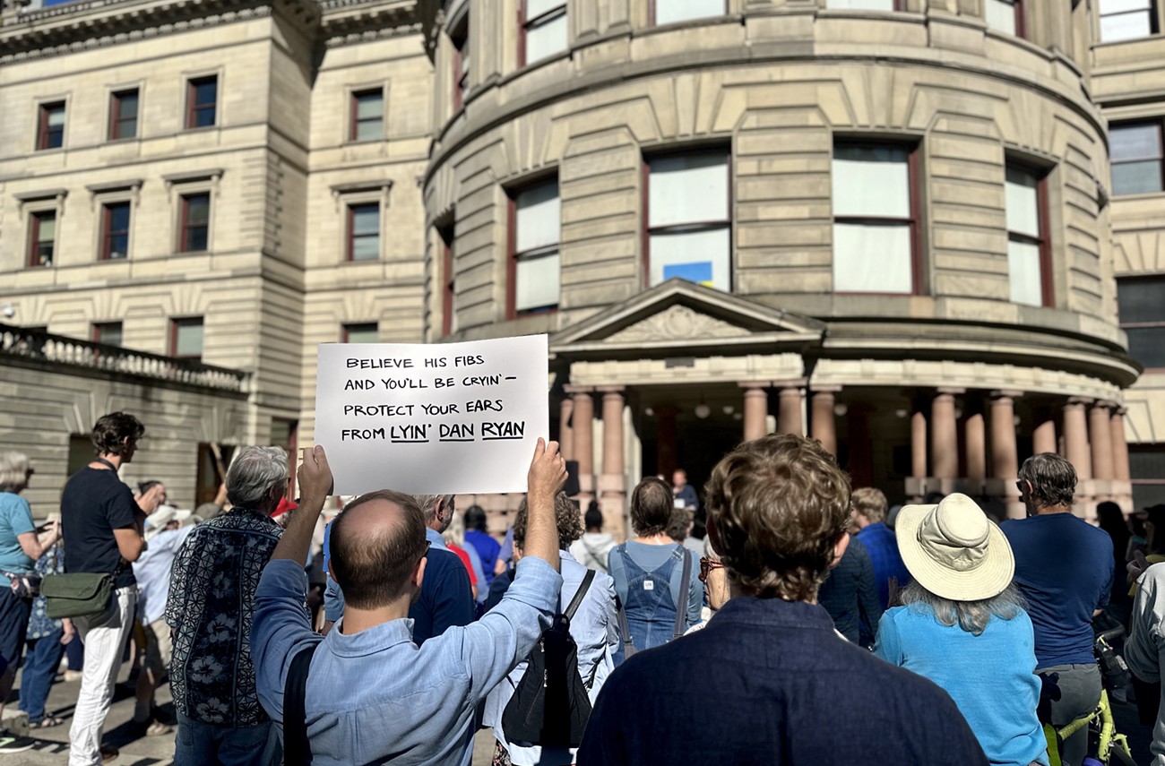 Big crowd at Portland City Hall this morning as people rally against city commissioners promoting an overhaul of the voter-approved charter reform measure. @portlandmercury pic.twitter.com/drJoqGv6jP