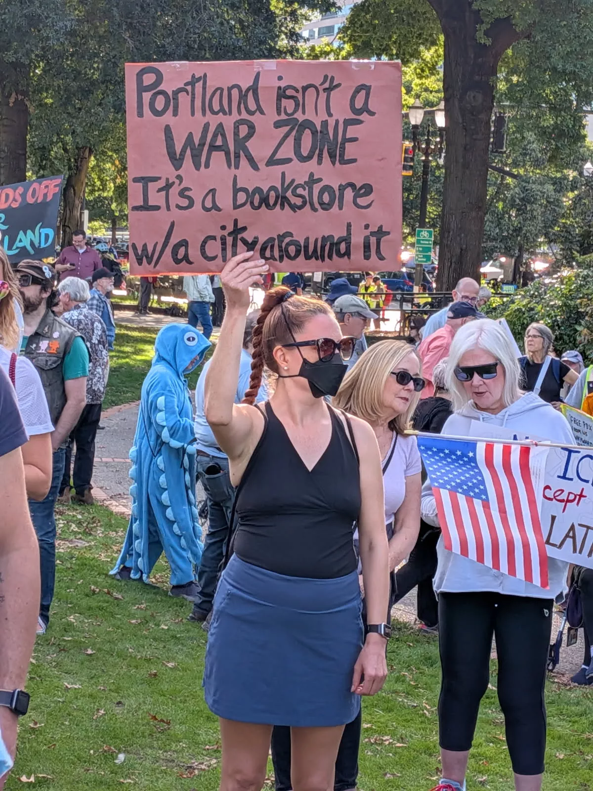 ⢠A separate rally also attracted an estimated 2,000 people to Portland's waterfront park yesterday, where demonstrators waved signs and listened to speakers such as Mayor Keith Wilson and Governor Tina Kotek, who once again lambasted the Trump administration for their idiotic political posturing, encouraged Portland demonstrators to "not take the bait," and (in Kotek's case) correctly label Trump's actions as "bullshit."