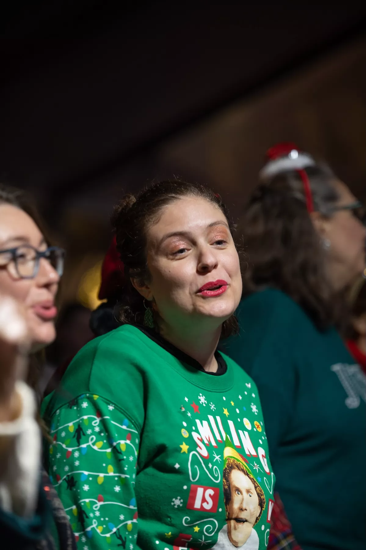 It was the 11th Annual Great Figgy Pudding Caroling Competition. Here’s how it worked: There were 16 teams of carolers, including barbershop quartets, high school choirs, larger adult singing groups, and one group of women who sang Christmas traditionals reworked to function as protest songs.
