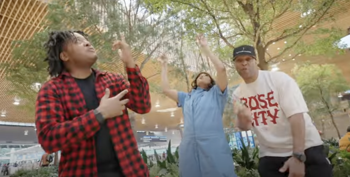 The new track celebrates PDX’s bright and flashy new redesign, including the gorgeous, eco-friendly mass timber ceiling along with a plethora of indoor trees. “We’ve got so many and they grow so tall/ Now the airport doesn’t feel like a mall,” raps Mike Likes Science.