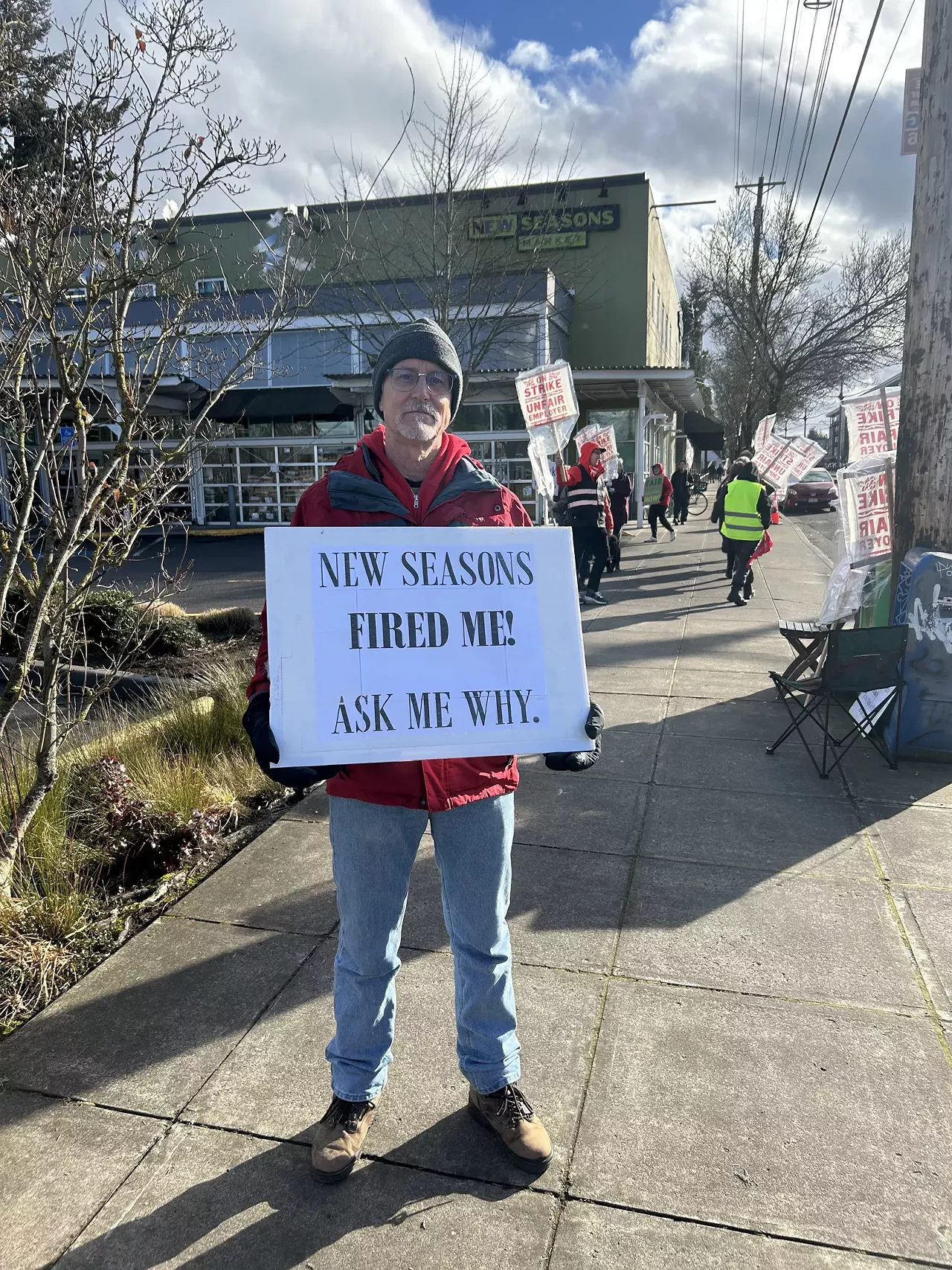 Coworkers of Foster and Mikey Munns were outraged. They believe Foster was terminated for trying to help a colleague. Foster, who is treasurer of the New Seasons Labor Union (NSLU), was fired January 28 at the start of his 1:30 pm shift. By 3:15 pm his coworkers walked off the job, printed flyers, and began picketing outside the store.