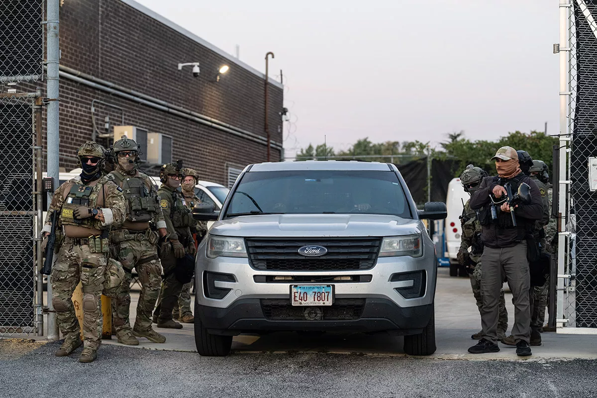 Late Thursday, October 2, the Illinois State Police and the Cook County Sheriff’s Office announced that a “unified command” would take over crowd control from the mostly hands-off Broadview Police Department. During protests that have occurred weekly on Fridays and Saturdays, ISP and sheriff’s police last week corralled protesters into designated “protest areas” that were enclosed by concrete barricades and arrested people who refused to leave the public street.