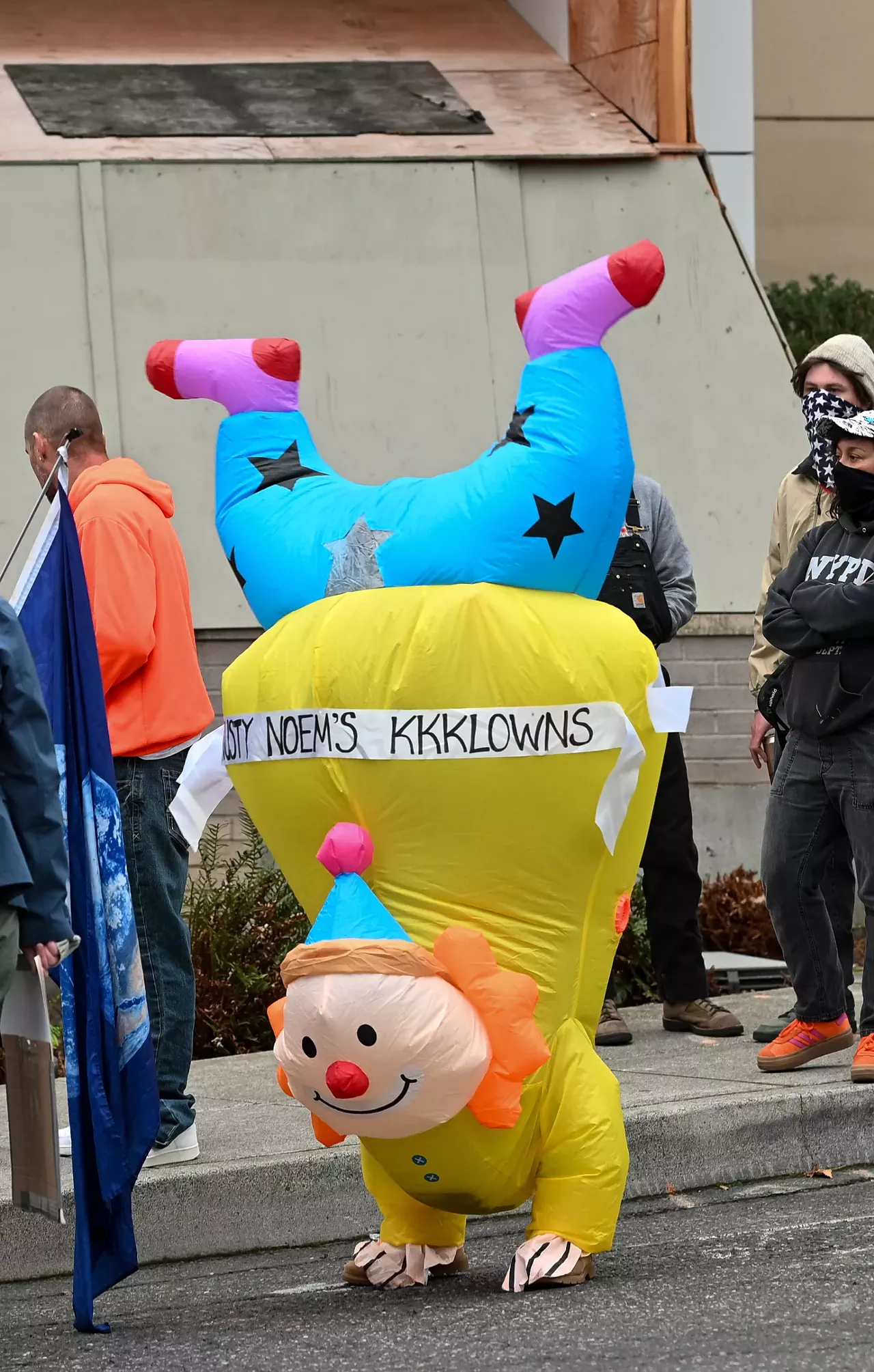 during a protest Saturday, October 18. Giant inflatable costumes have now become a hallmark of Portland's anti-ICE protests.suzette smith