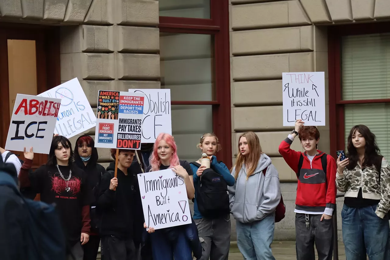 Students marched with signs like “Abolish ICE” and “Immigrants built America” and “ICE has no place in schools.” Tuesday’s rally was organized by Jasmine Hamilton, a Lincoln High student who says she wanted a peaceful way to show resistance and spread awareness of what’s going on and “bring people together to make them understand that their voice matters, too.”